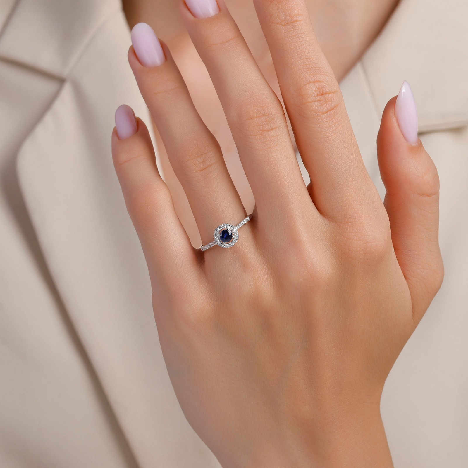 0,48 Karat Pırlanta Safir Yüzük
